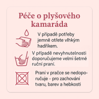 Celé tělíčko je ručně šité z měkké fleece látky a plněné dutým vláknem, což zaručuje příjemnou hebkost a lehkost.